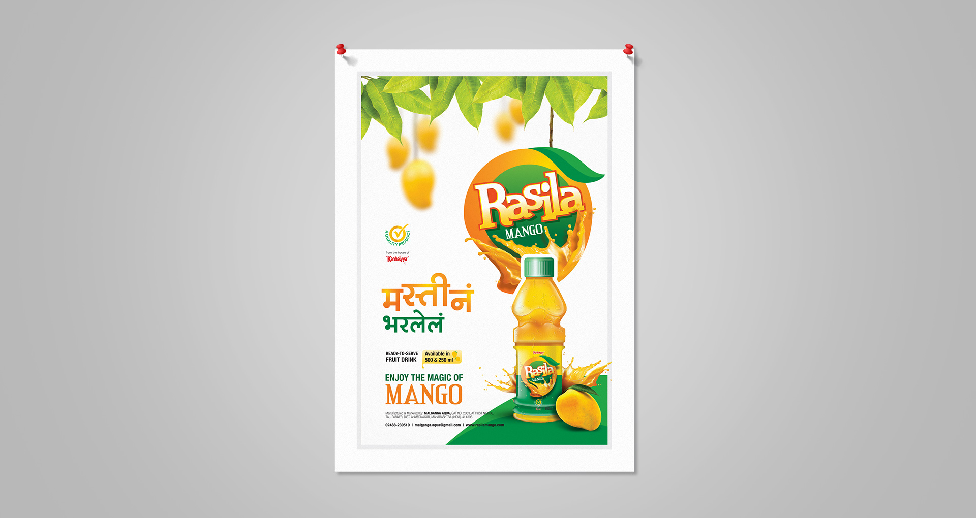 the idea behind rasila mango drink – a new entrant, needed to be refreshingly different. our team worked with intent to create a differentiator in terms of design and colours. a blend of realistic and graphical mangoes worked its magic. the result was a refreshing, exciting look and feel to the brand.