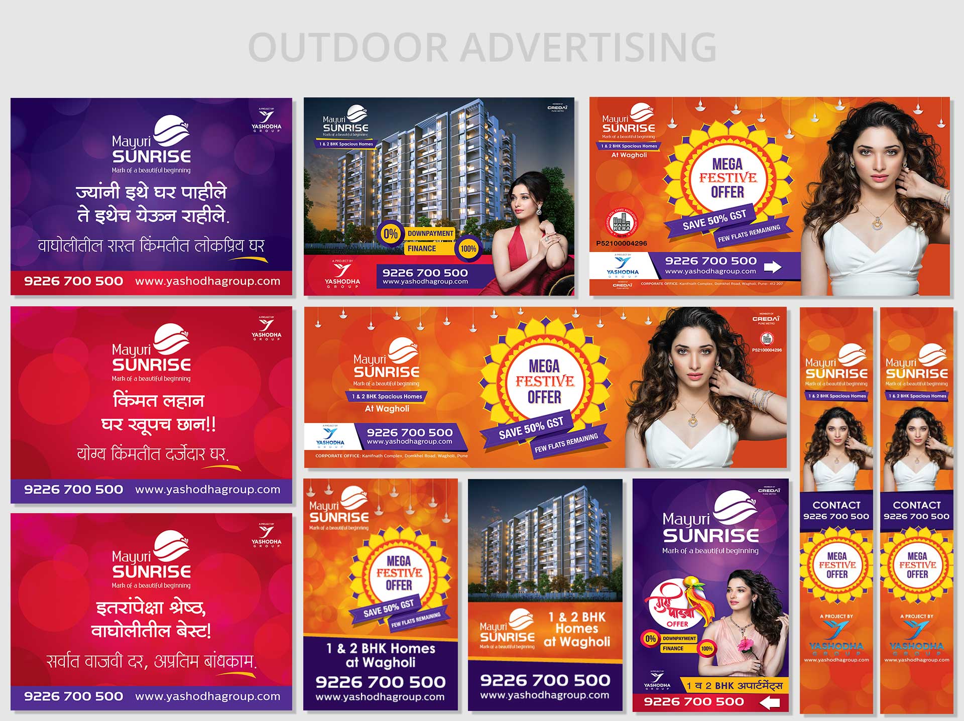 In the saturated construction market, it was imperative to create a distinct identity. Hence, in case of Mayuri Sunrise, a luxurious 1&2 project, we signed Tamannaah Bhatia, as its brand-face. The entire branding along with marketing collaterals and online presence received an overwhelming response.
