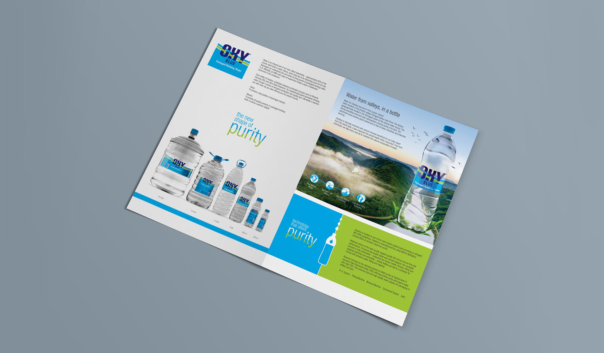 For packaged drinking water, the first impression is important. To be seen in the clutter clearly, we designed the logo quite noticeable in the first glimpse itself. Since, the water for Oxyblue sourced is from pure, natural water Sinhgad Valleys near Pune, we emphasized it in the communication.