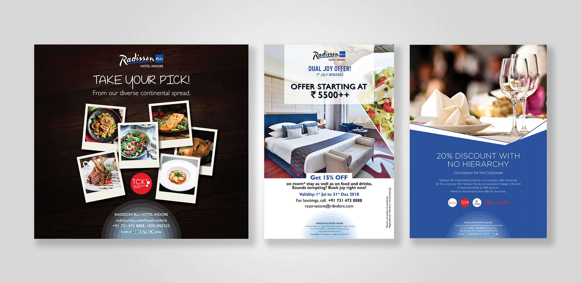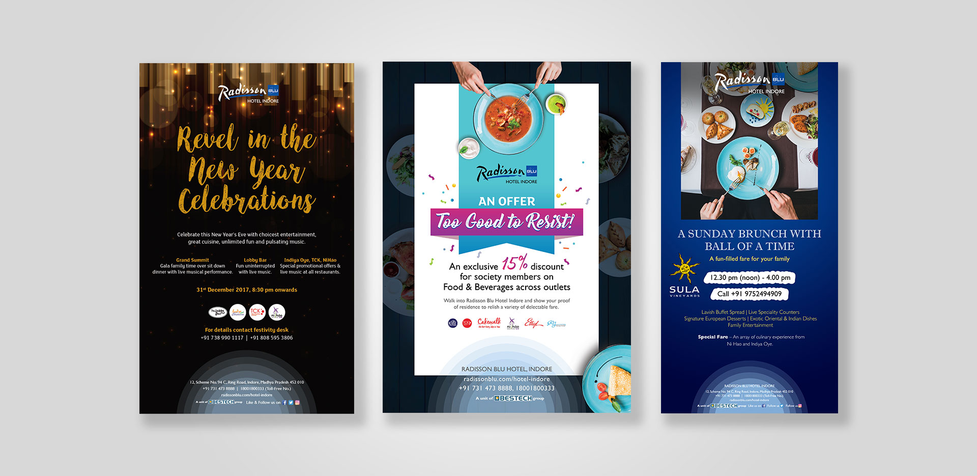 We have been handling Radisson Blu Hotel Indore, deliver apt creatives for their different promotions. Since 2017 until now, our ideas in print and outdoor media along with marketing collaterals have been making waves in Indore city. The hotel has been receiving good response giving us a reason to be happy!