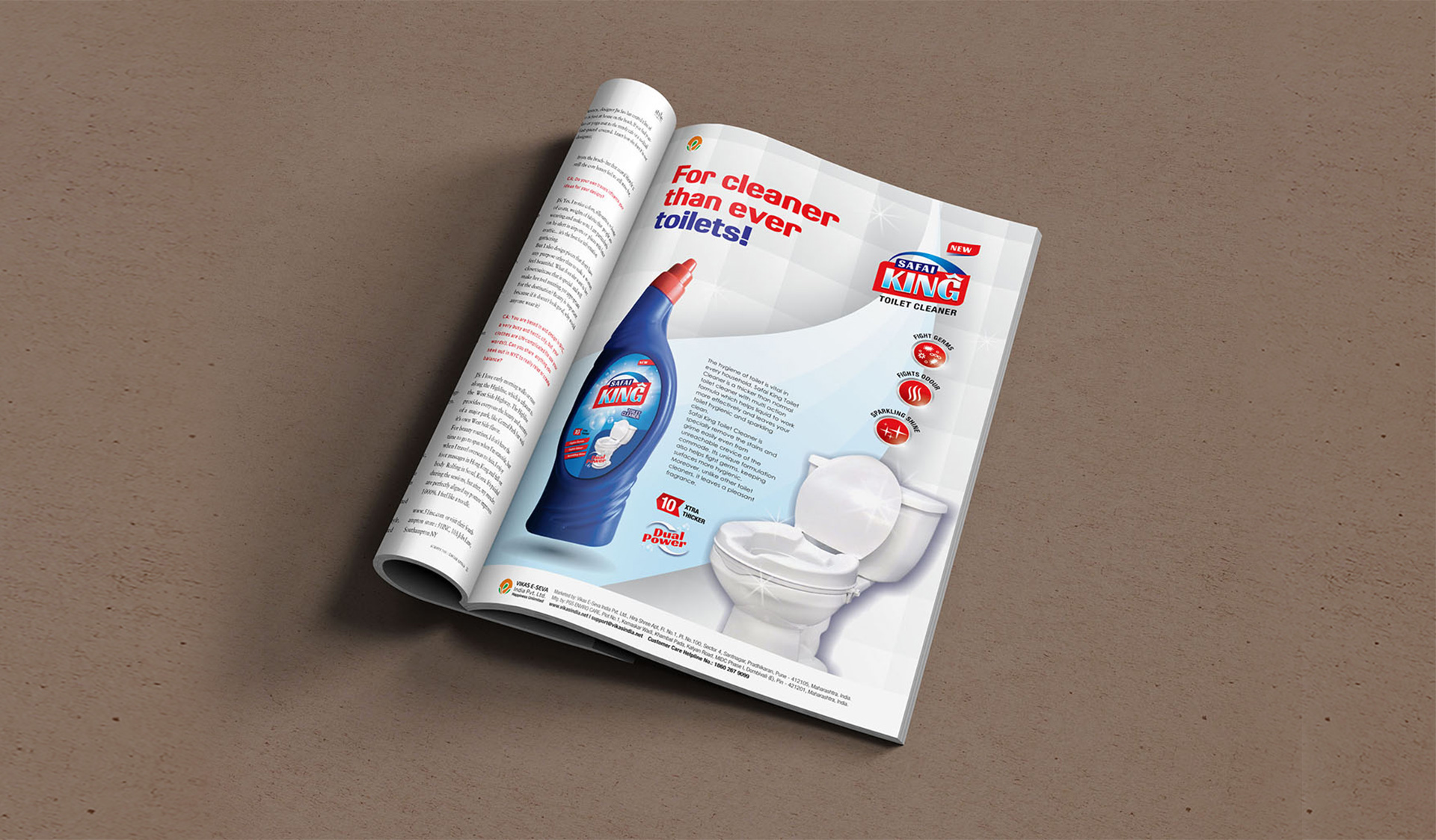 The cluttered market with umpteen cleaners is challenging for brand identity. However, our team came up with a striking logo and packaging design for a cleaner product that turned it into a brand. We named it ‘Safai King’, a flagship brand with floor, surface and toilet cleaner variants.
